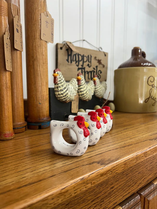 Vintage Rooster Napkin Rings - Set Of 4